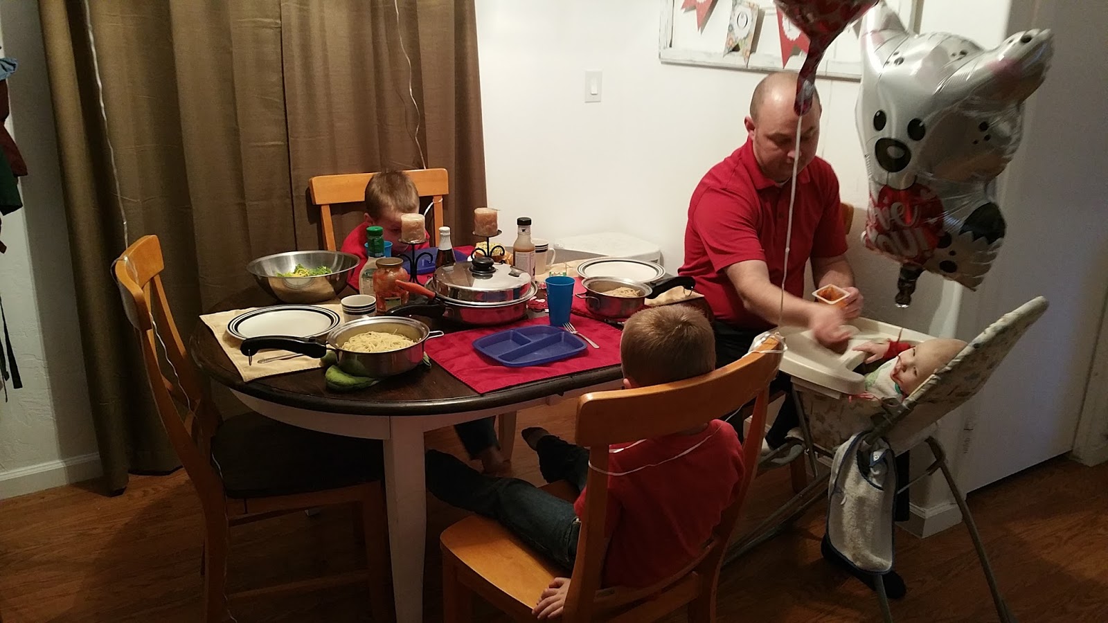 The day of Valentine's Day, we decided to celebrate as a family instead of us going out. I made a yummy alfredo dinner, got some balloons for everyone, and special Valentine's cards. I loved it and hope to make it a tradition from now on.